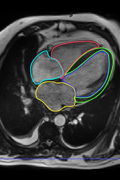 Annotation of key areas including the endocardium, epicardium, ventricles and valves at both end-systole and end-diastole for complete functional analysis.